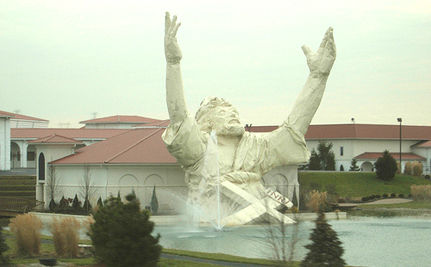 On June 14th, in a kind of poetic irony, lightning struck the 62-foot-tall statue of Jesus at the Solid Rock Church in Monroe, Ohio. The resulting fire destroyed the “King of Kings” statue, as well as damaged adjacent structures. The story caught the attention of PETA and they extended an offer to the church to build a new statue in its place — with a distinct twist, of course. The statue PETA proposes to build, with the money donated from a Christian member of the organization, would depict Jesus holding a lamb over his shoulder, with an inscription at the base of the statue reading “Blessed are the Merciful. Go Vegan.”