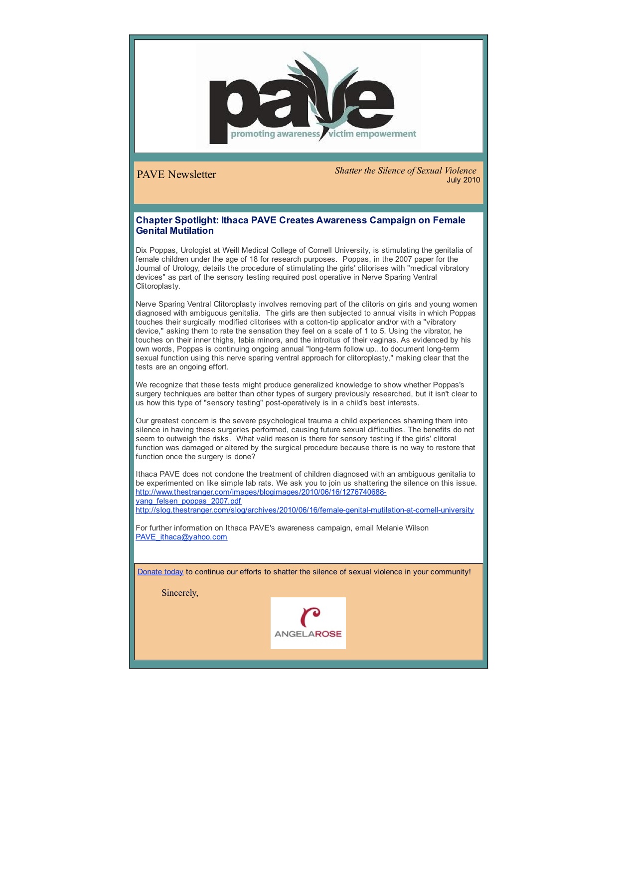 Female Genital Mutilation at Cornell University, PAVE Response