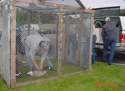The USDA’s culling programs include round-ups of entire flocks of Canada geese at various locations across the US. The slaughter is conducted after adult geese have molted their flight feathers, their goslings have hatched, and the community is asleep. Away from the public eye, the USDA corrals the helpless geese and their young into small pens, uses plastic zip-ties to bind their feet together, and then shoves them into mobile gas chambers to be killed, or sends them elsewhere for slaughter.