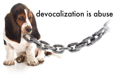 Serious risks, no benefit for animals: People who have rescued devocalized animals, and vets who have treated the complications–from a lifetime of uncontrollable gagging to massive infection–say devocalization is an act of cruelty, performed for convenience and profit without any benefit for animals, not even the guarantee of a home. Devocalized dogs and cats are abandoned like any other.