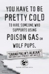 As governor of Alaska, Sarah Palin fought against protecting the Cook Inlet beluga whales and the dwindling population of polar bears. Plus, she escalated the bloody aerial wolf-killing campaign, and even planned to offer a $150 bounty for the severed forelimb of each killed wolf.