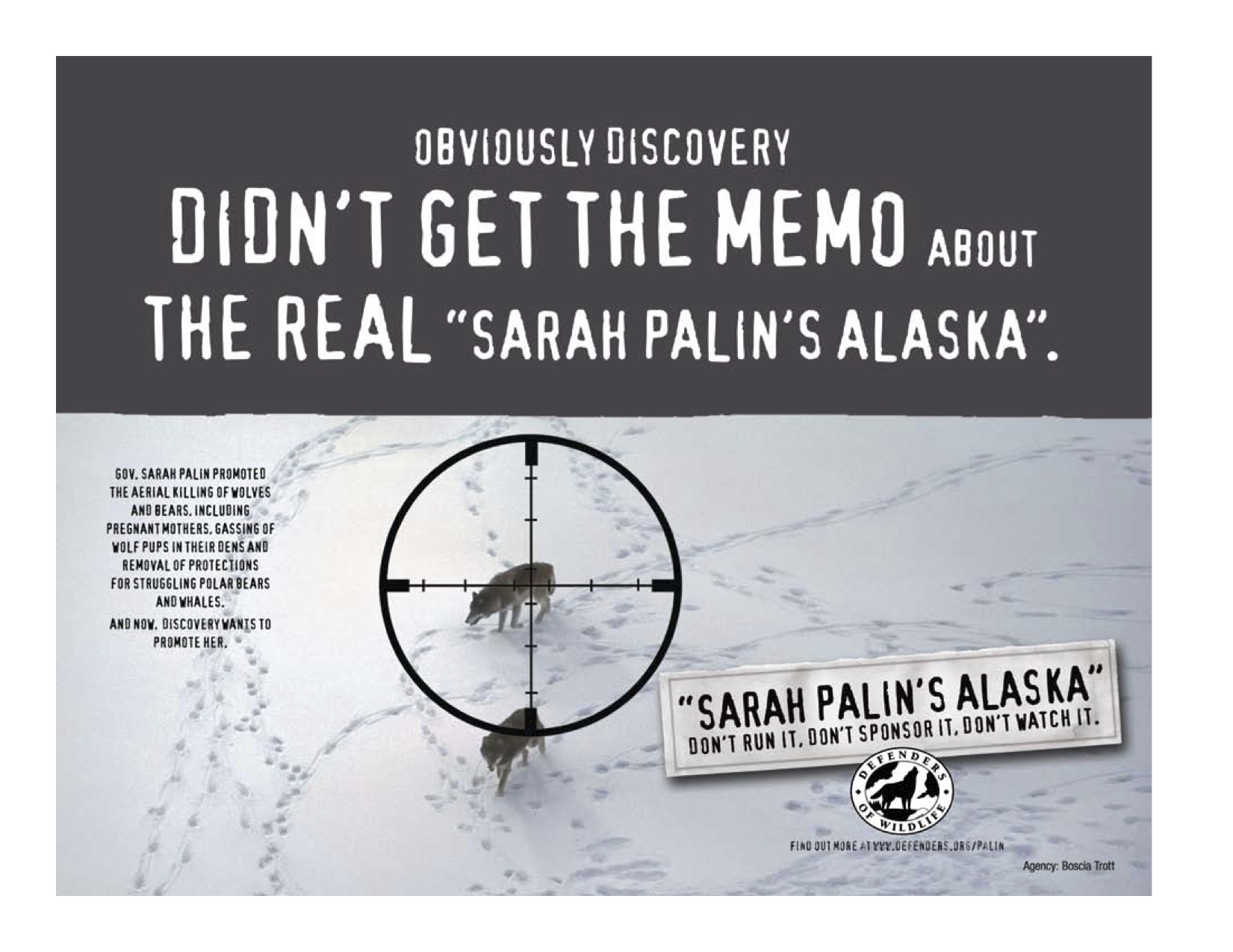 Defenders’ Metro Ads Against Discovery and Sarah Palin’s Alaska