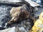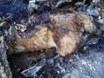 Venetia Soulakeli was taking care of a female dog in the back of the factory “Lixnia”, in Kokkinos Milos at the area of Acharnes in Athens, at Friday the 5th. Venetia, as always, went to feed the dog; the poor dog was ready to give birth to her puppies. The dog created her nest for the babies there in the rubbish under chipboard. A few hours later the dog was found burned alive, set on fire while giving birth to her pups. She must have felt horrendous pain from the delivery of the puppies and from the fire, too, because her bowel was out of her body. The pictures speak for themselves.