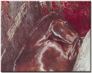 I don’t agree with the practice of slaughtering horses in any fashion. However, to say that the butchers cut the horses into pieces while they are still alive and screaming is absolutely rediculous. There’s no need to make the issue look any worse than it is, slaughtering horses is bad enough by itself. By stating false information, you only make your position look phony. And if you actually do believe that this truly is the way slaughter houses operate your either have the mental capicity of a turkey or you’ve been brain washed by someone else who doesn’t know what the hell they are talking about.