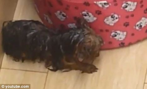 Terror: By the end of the attack, the dog was cowering in the corner behind his basket, shaking and looking like he had been covered in liquid