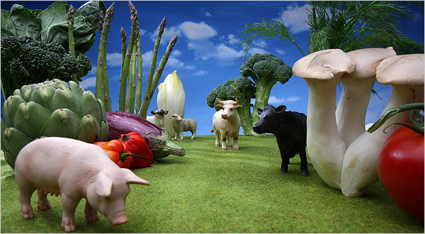 The last point I would like to bring up is the point of nutrition since this is brought up nearly every dinner conversation. The idea that plants don’t have protein, vitamins and minerals is ludicrous. In a NYTimes article, Mark Bittman brings up the point that, “Plants have protein, too; in fact, per calorie, many plants have more protein than meat.”[iv] I suppose the next time someone asks where I get my protein, I should say, “Vegetables, but you eat meat, are you sure you’re getting enough protein?” The other side to the wacky argument deals with not having enough vitamins and minerals. Why do you think dietitians stress eating more fruits and vegetables? Could it be that vegetables have a variety of vitamins, minerals, and fiber which meat doesn’t have? Yes.(and if people were truly worried, I don’t see anything wrong with taking a multi-vitamin which some meat-eaters are already do. Also, before this comes up, by eating a variety, you can get all of the essential amino acids.)